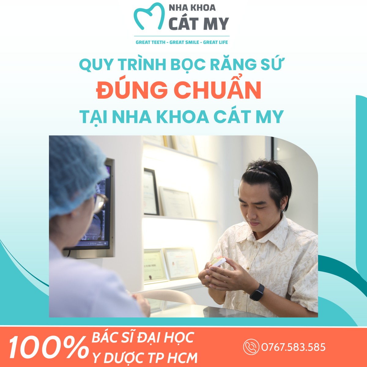 Bọc răng sứ không chỉ là giải pháp khắc phục khuyết điểm răng miệng mà còn là hành trình tìm lại sự tự tin và nụ cười rạng rỡ. Tại Nha khoa Cát My, chúng tôi áp dụng quy trình bọc răng sứ chuẩn Y khoa, đảm bảo ba tiêu chí: An toàn – Thẩm mỹ – Bền vững.